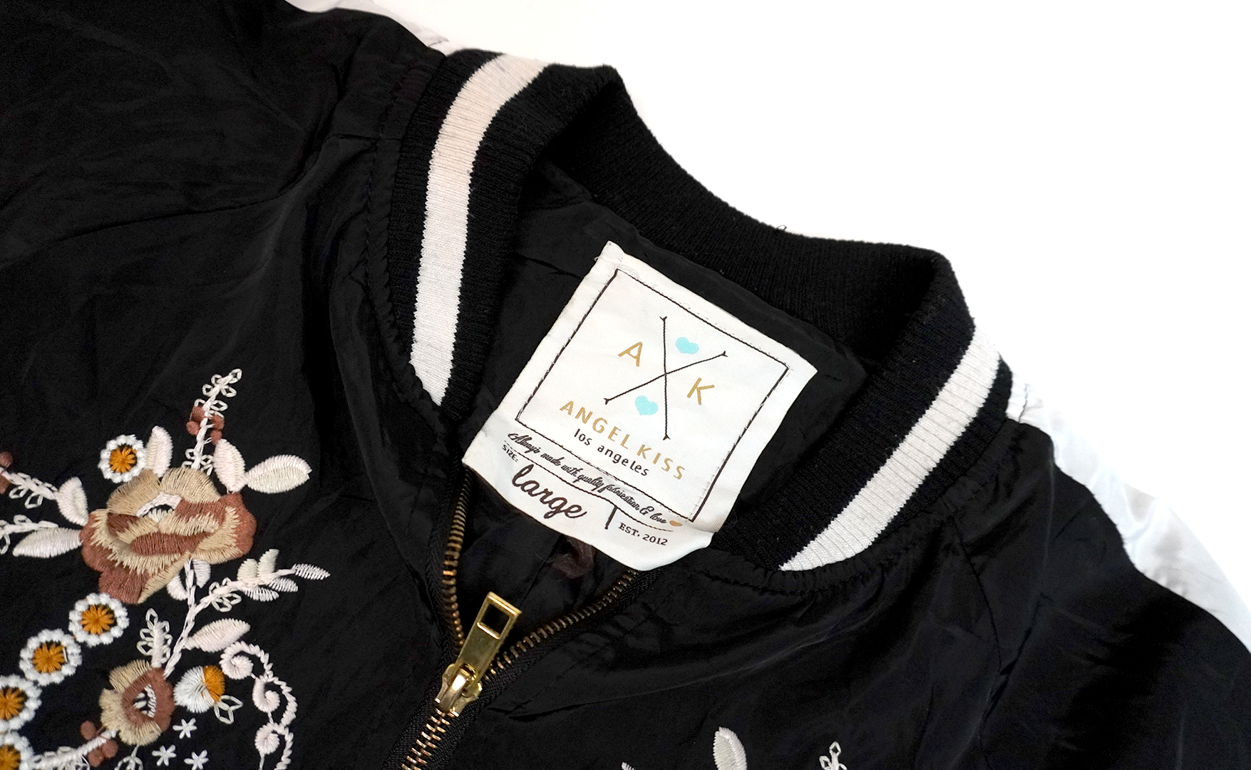 Vintage Y2K Angel Kiss Embroidered Flower Design Satin Bomber Jacket Size Large
