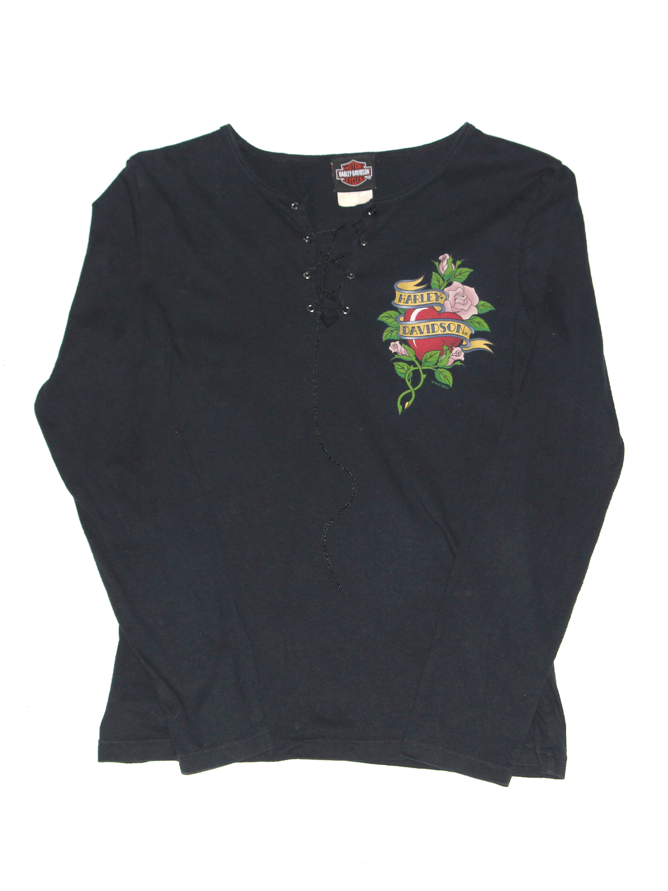Vintage Y2K Harley Davidson Traditonal Heart Tattoo Long-Sleeve Size Medium