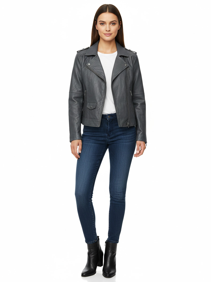 Vintage Y2K Leather Jacket Black Charcoal Women’s Size M UK 14