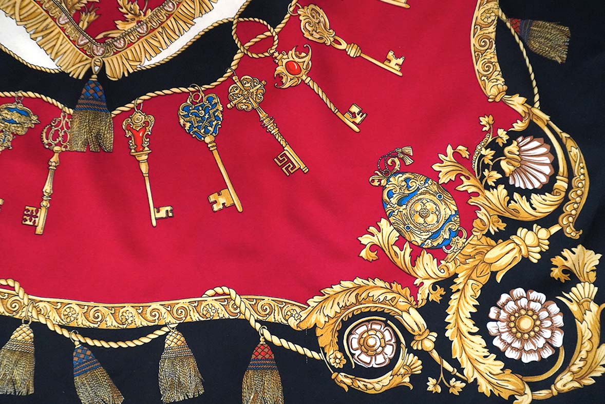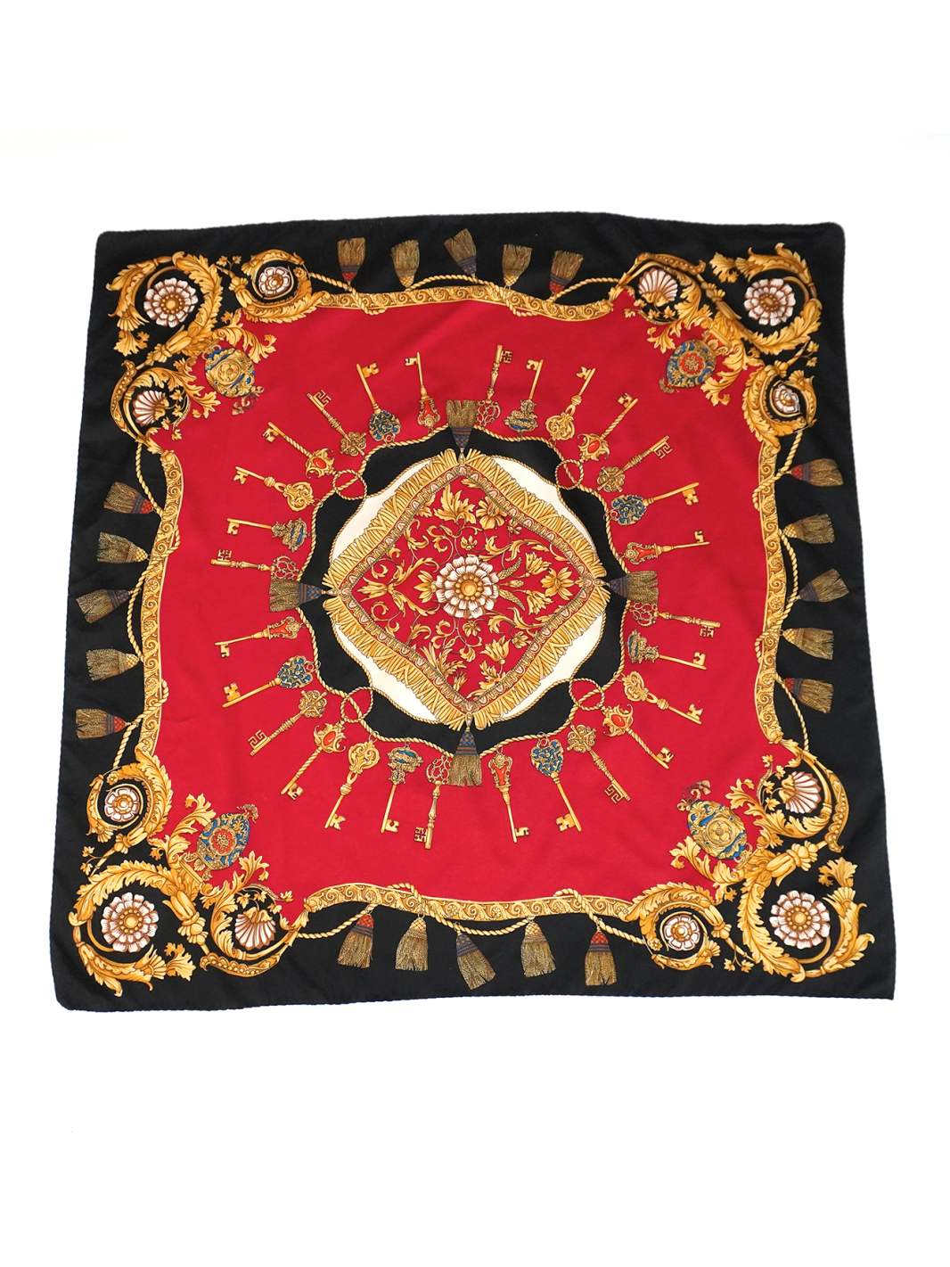 Vintage Y2k Royal Keys & Tassel Pattern Scarf 34in x 35in