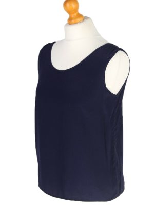 Women Blouse Top Shirts 90s Sleeveless Casual London Navy Blue Size L