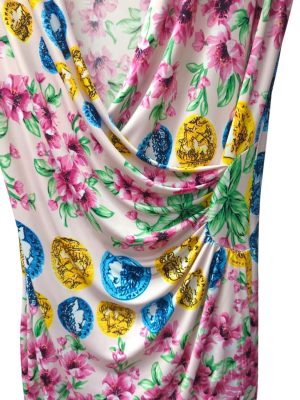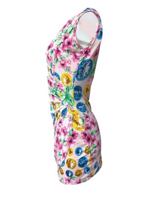 Women Wrap Jersey Dress Pink Floral Print V Neck Summer Size S