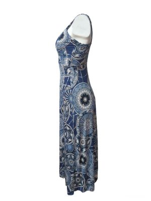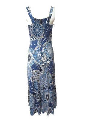 Womens A-Line Dress Zip Front Sumer Maxi Dress Blue Size S