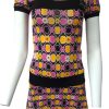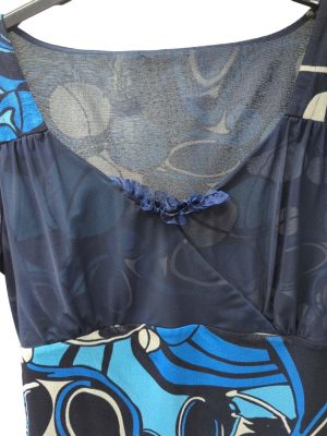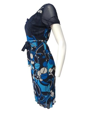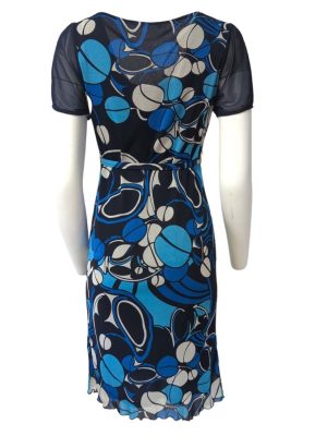 Women’s Abstract Print Dress Colorblock Self Belted Chiffon Tunic Size M