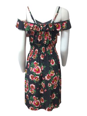 Womens Cold Shoulder Jersey Dress Sleeveless Elastic Waist Size S/M