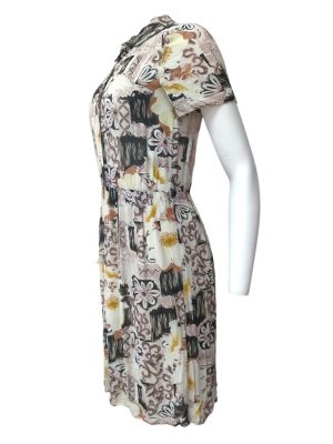Womens Day Dress Chiffon Lined Skirt Darling Collared Button-Up Size M