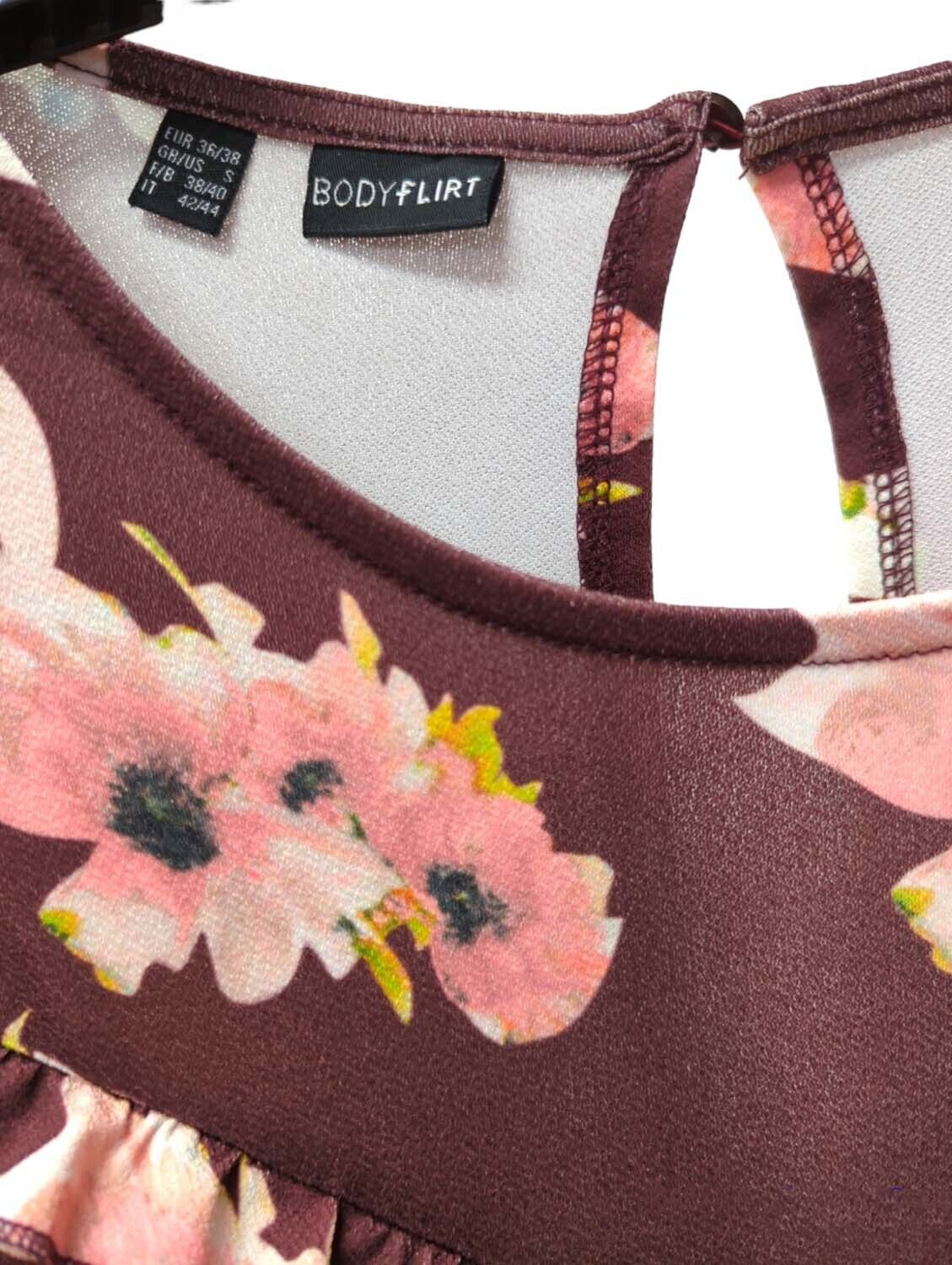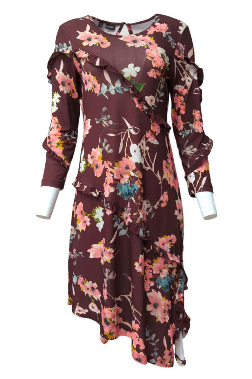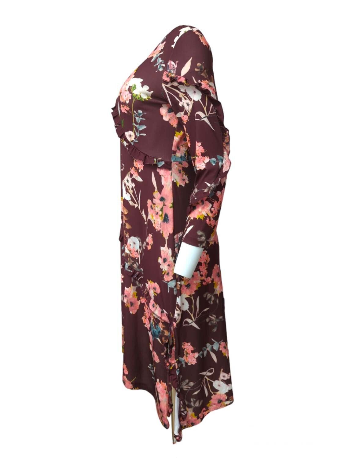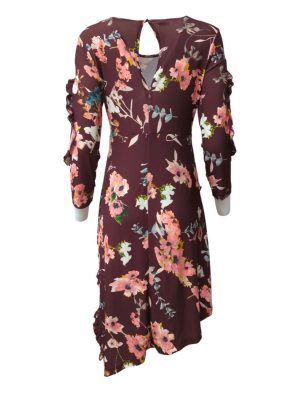 Womens Dress Ruffle Detailed Asymmetric Hem Floral Vintage 70s Size L