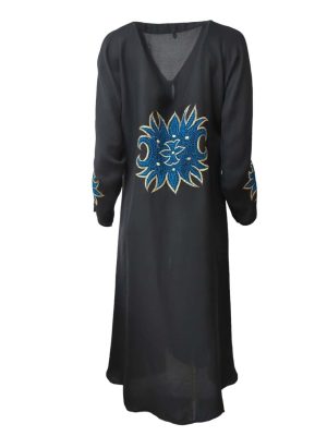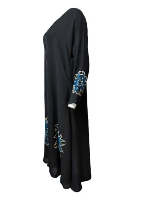 Womens Jacket Style Abaya Embroidered Islamic Maxi Dresses Black Size XL