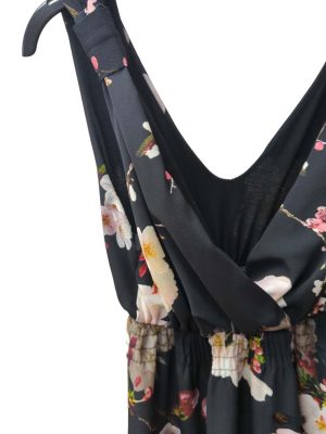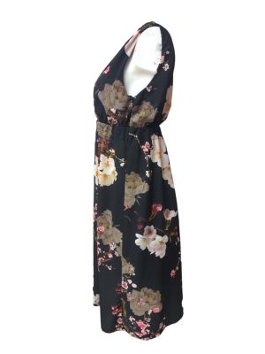 Womens Midi Dress Surplice Wrap Sleeveless Elastic Waist Size S/M