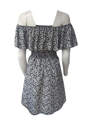 Womens Off Shoulder Mini Dress Floral Elastic Waist One Size