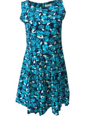 Womens Pleated Dress Sleeveless Knee Lenght Round Neck Multi Size S