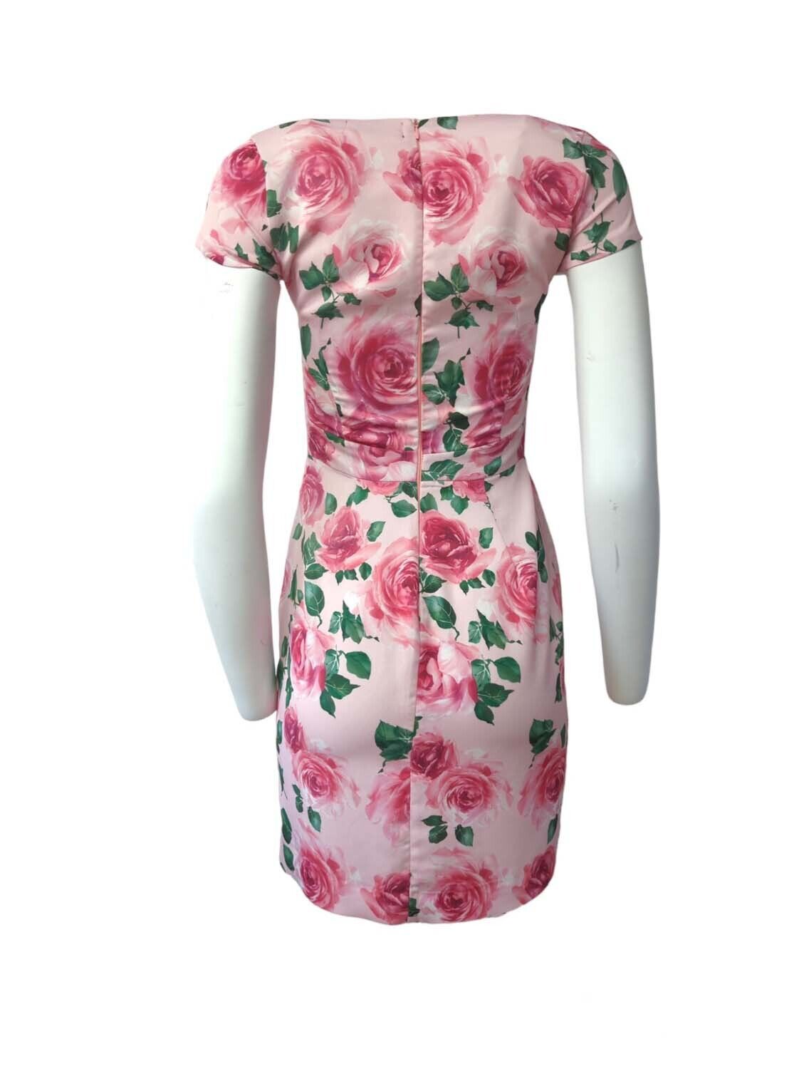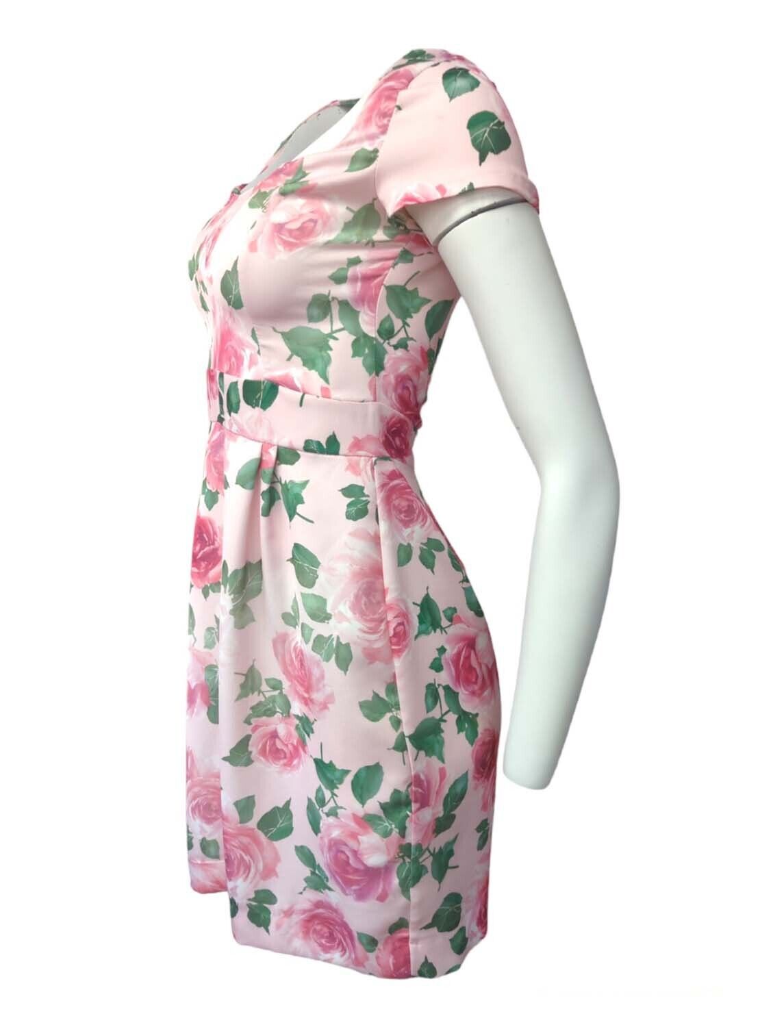 Womens Rose Skater Dress Floral Print Summer Short Sleeve Size S