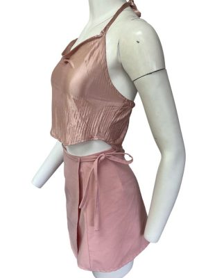 Womens Satin Halter Neck Crop Top Boho Summer Beach Holiday