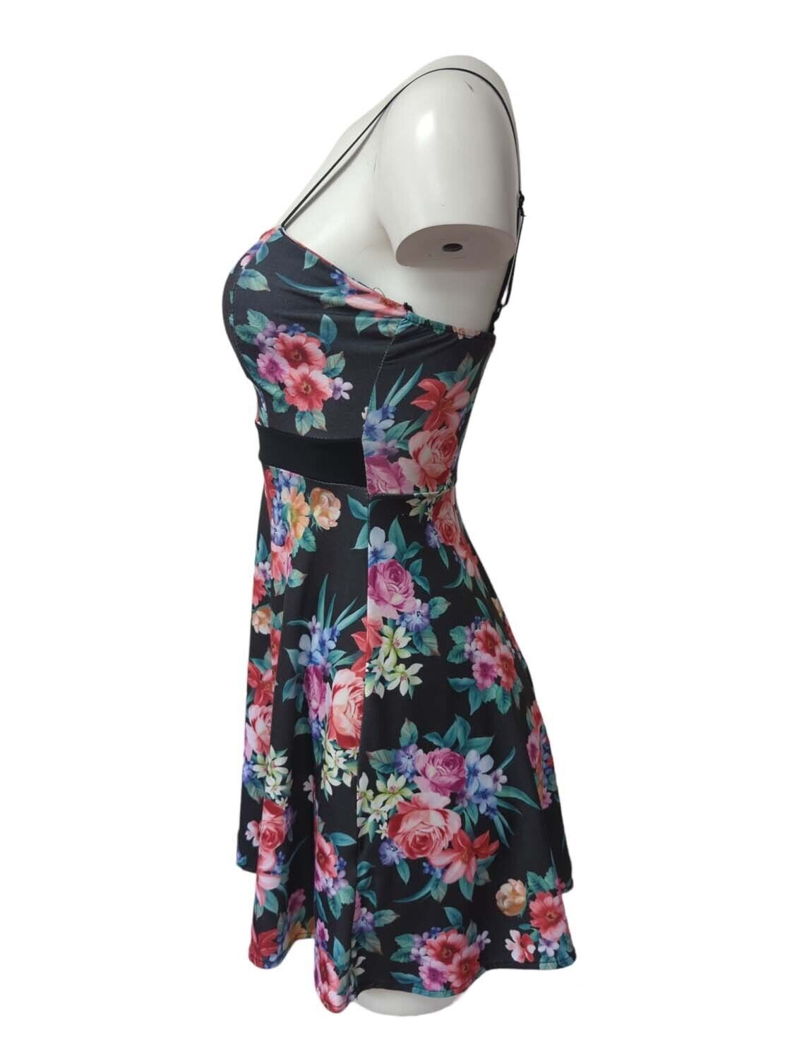 Womens Skater Dress Bustier Tin Strap Flare Floral Print Size S/M