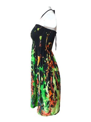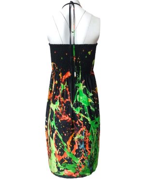 Womens Strapless Dress Mesh Bandeau Top Knee Lenght Floral Size S