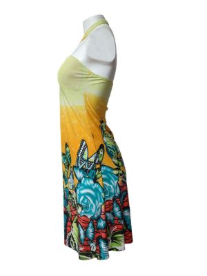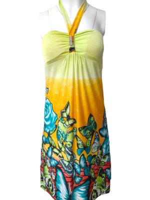 Womens Strapless Dress Mesh Bandeau Top Midi Floral Size S/M