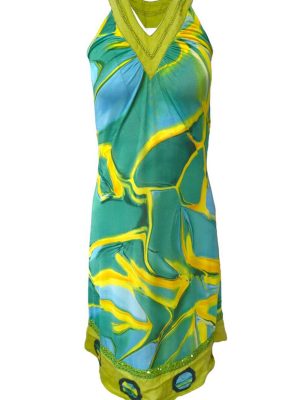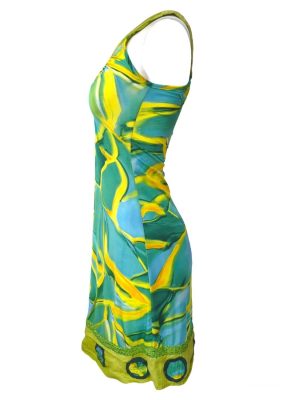Women’s Summer Dress Abstract Sleeveless Sequin Detail Midi Size XS
