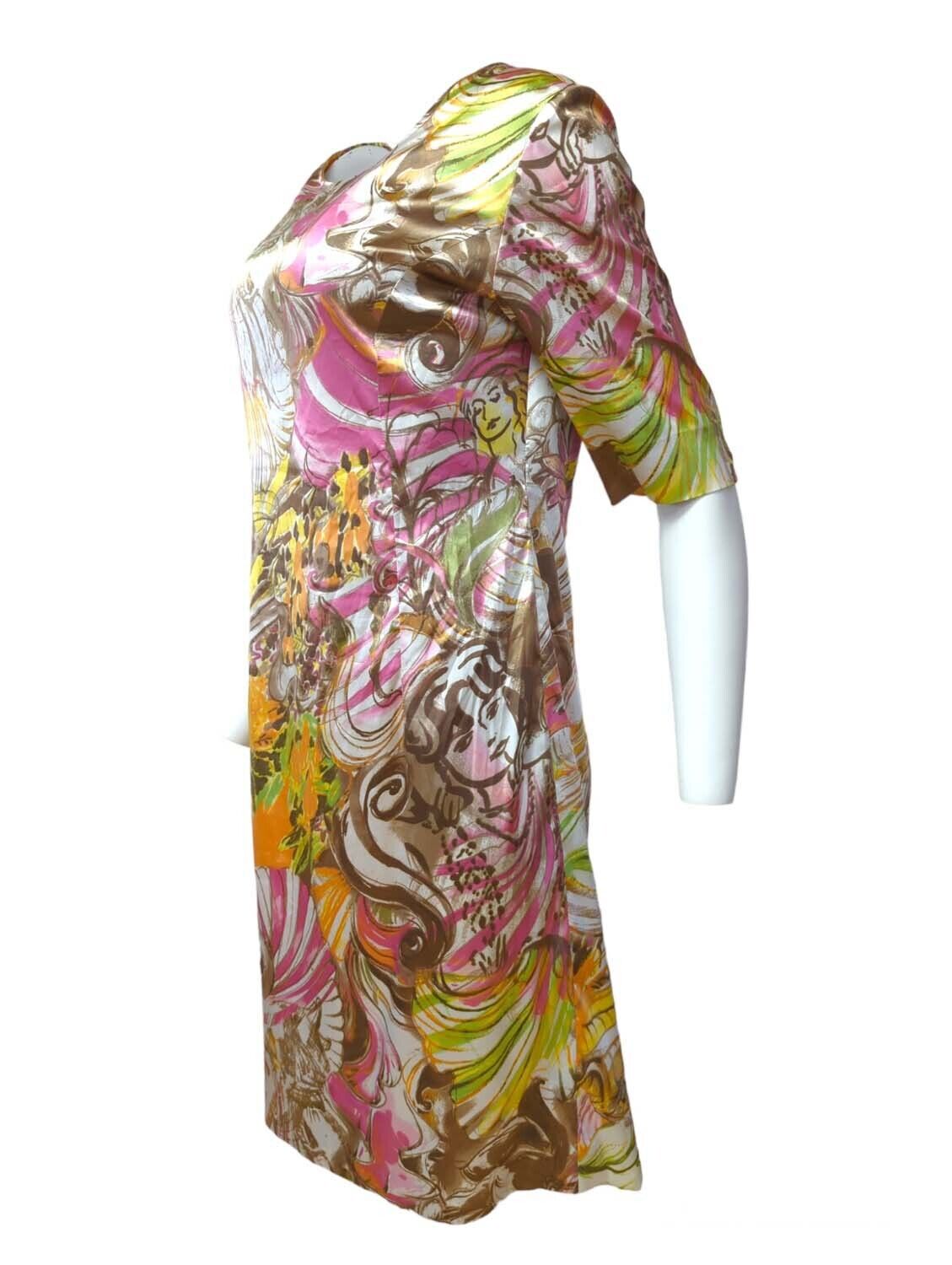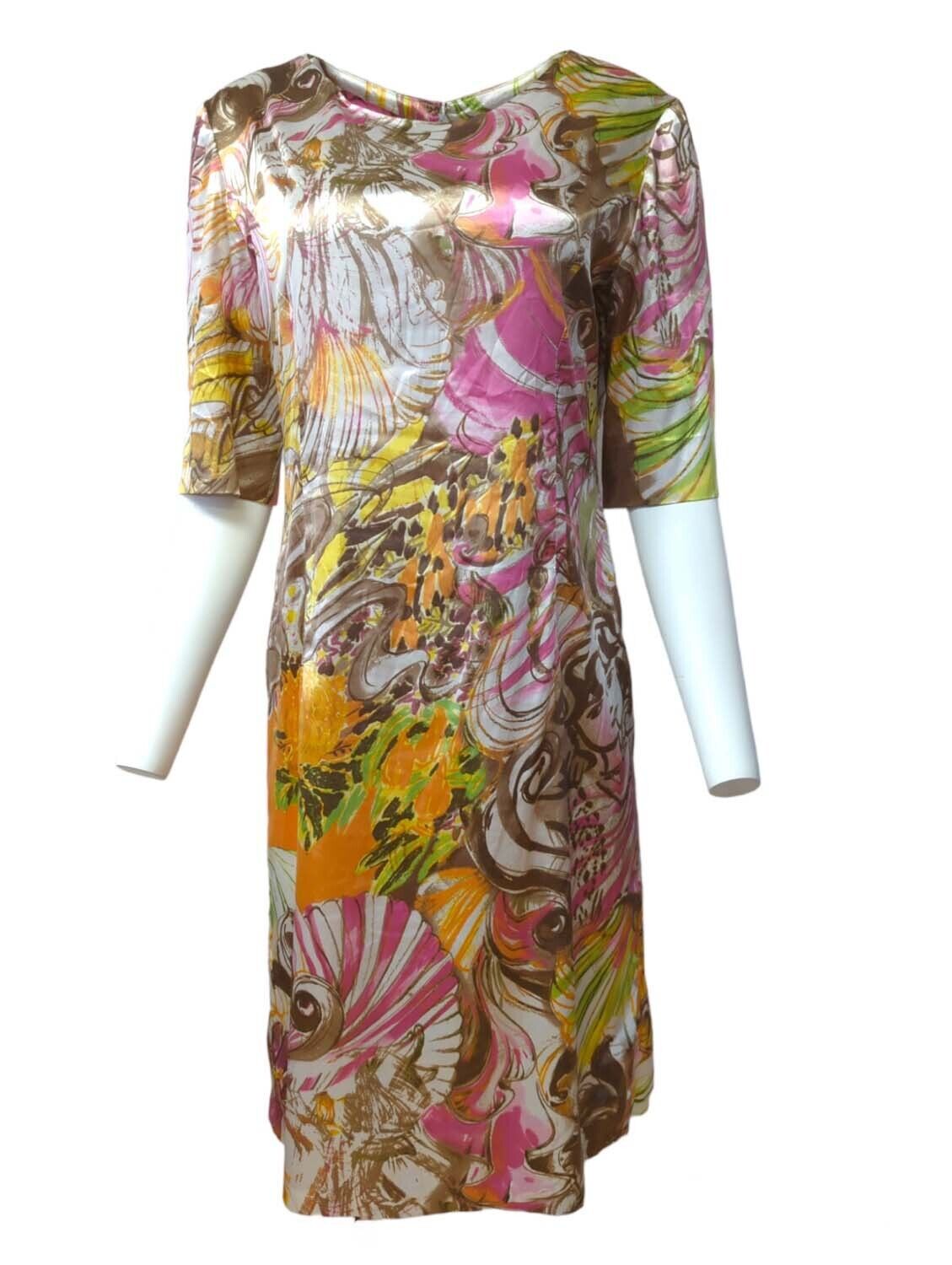 Womens Tunic Dress Floral Printed Half Sleeve Round Neck Size L