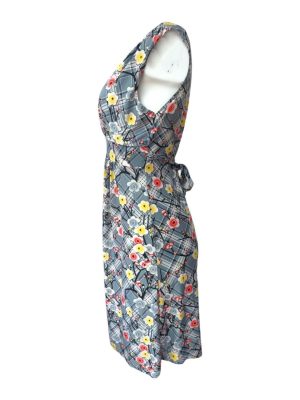 Womens Wrap Dress V Neck Floral Summer Midi Size M